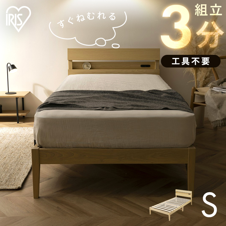 ■★クーポンあり★ 簡単組立すのこベッド シングル 天然木 工具不要 コンセント付き 宮付き ベッドフレーム シングルベッド すのこ 収納