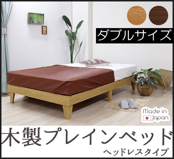 ■木製プレインベッド ヘッドレスタイプ ダブル ダブルベッド ポケットコイルマットレス付き ベッド ベッドフレーム レッグタイプ