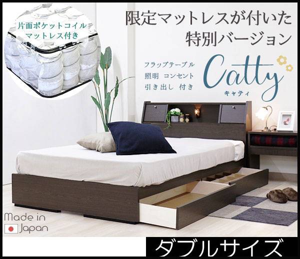 ■特別価格 限定ポケットコイルマットレスが付いた特別バージョン ベッド 収納ベッド 棚付きベッド ダブル ダブルベッド ダブルサイズ 日