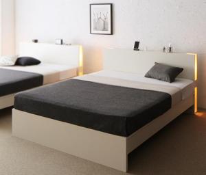 ■ダブルベッド 白 ホワイト ベッド ボンネルコイルマットレス付 白 ホワイト 低床 照明 宮付 すのこ ダブルベッド 白 ホワイト ベッド