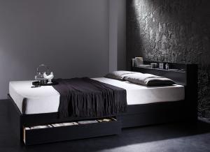 ■ダブルベッド 白 ホワイト、黒 ブラックから選べる 棚・コンセント付き収納ベッド スタンダードポケットコイルマットレス付き 組立設置