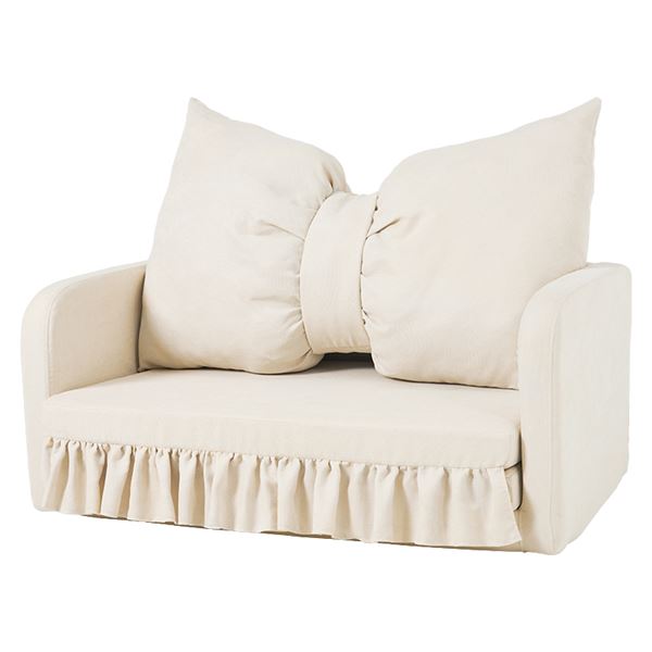 大きなリボンクッションとフリルが華やかな、可愛い2WAYソファベッド