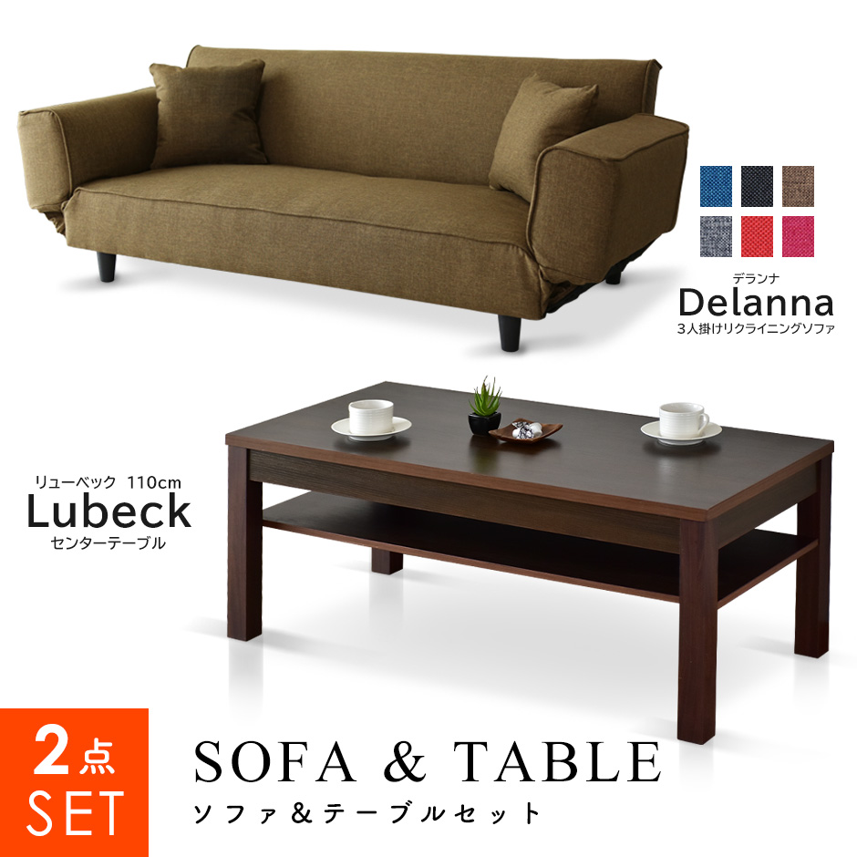 ■ソファセット ソファベッド ローテーブル リクライニングソファ 3人掛け 肘付き コーヒーテーブル センターテーブル 応接 木製 デランナ3