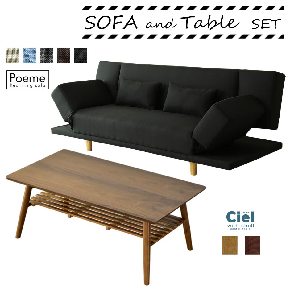 ■ソファベッド センターテーブル セット リビング リクライニング 2人掛け 3人掛け ローテーブル 折りたたみ 収納 棚付き 木製 おしゃれ