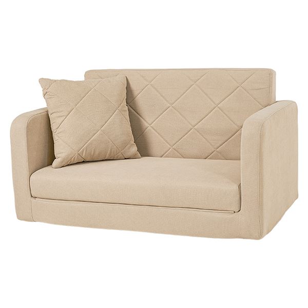 座面を広げると簡易ベッドに。コンパクトサイズでワンルームにも置きやすく、背もたれのキルティングデザインが可愛いソファベッド。