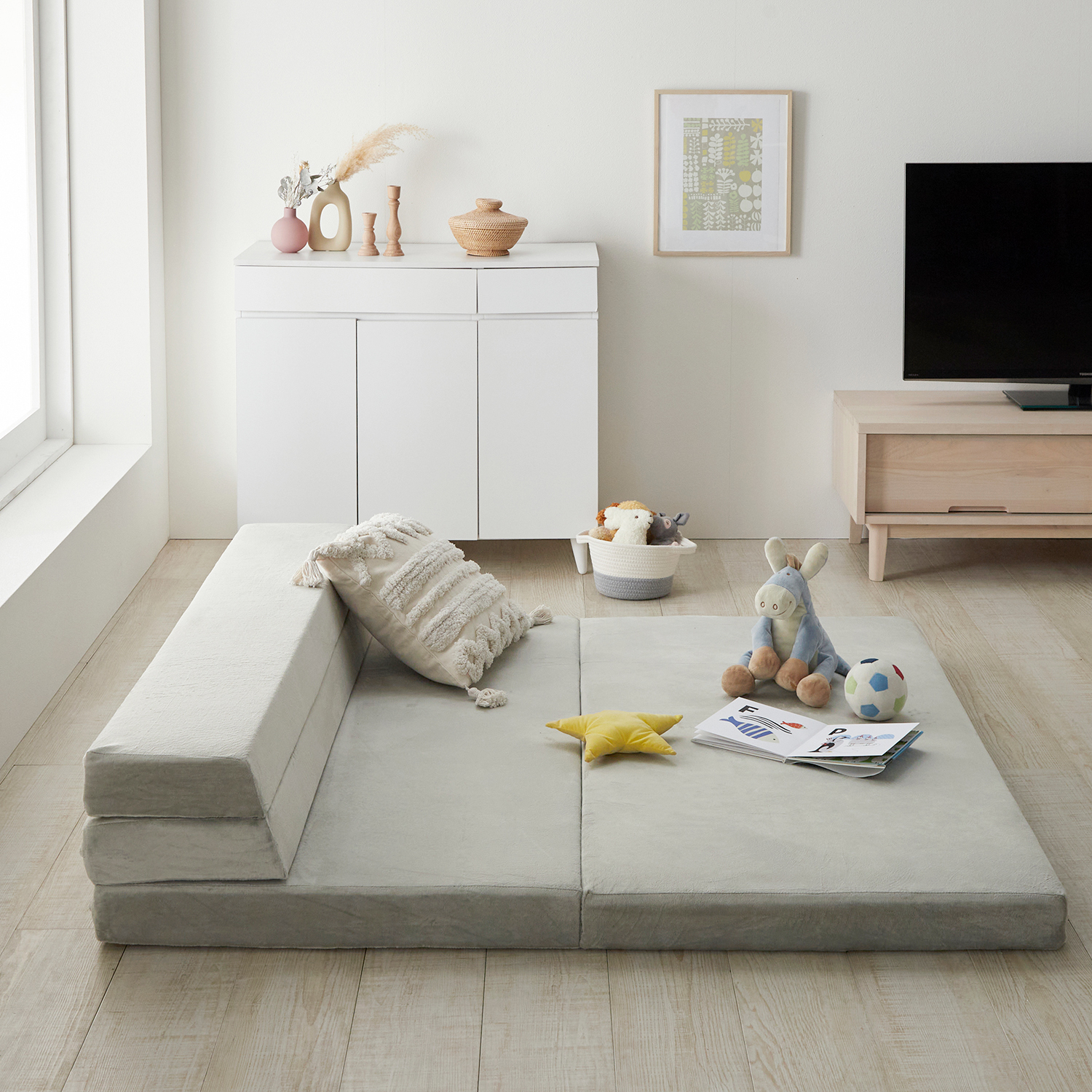 ゲームをしたりテレビを観たり、ごろんと横にもなれるウレタンマットレスフローリングのリビングなどでもこれがあれば、程よいクッション性でちょっとくつろぐ時に便利折りたたみ部分を重ね背もたれにすれば、TVやゲーム、スマホなど、脚を伸ばしてソファー使いができますしっかり10cmの厚みがあるので、ちょっと昼寝をするときなどにも便利小さなお子様のプレイエリアにも◎#四つ折りマットレス