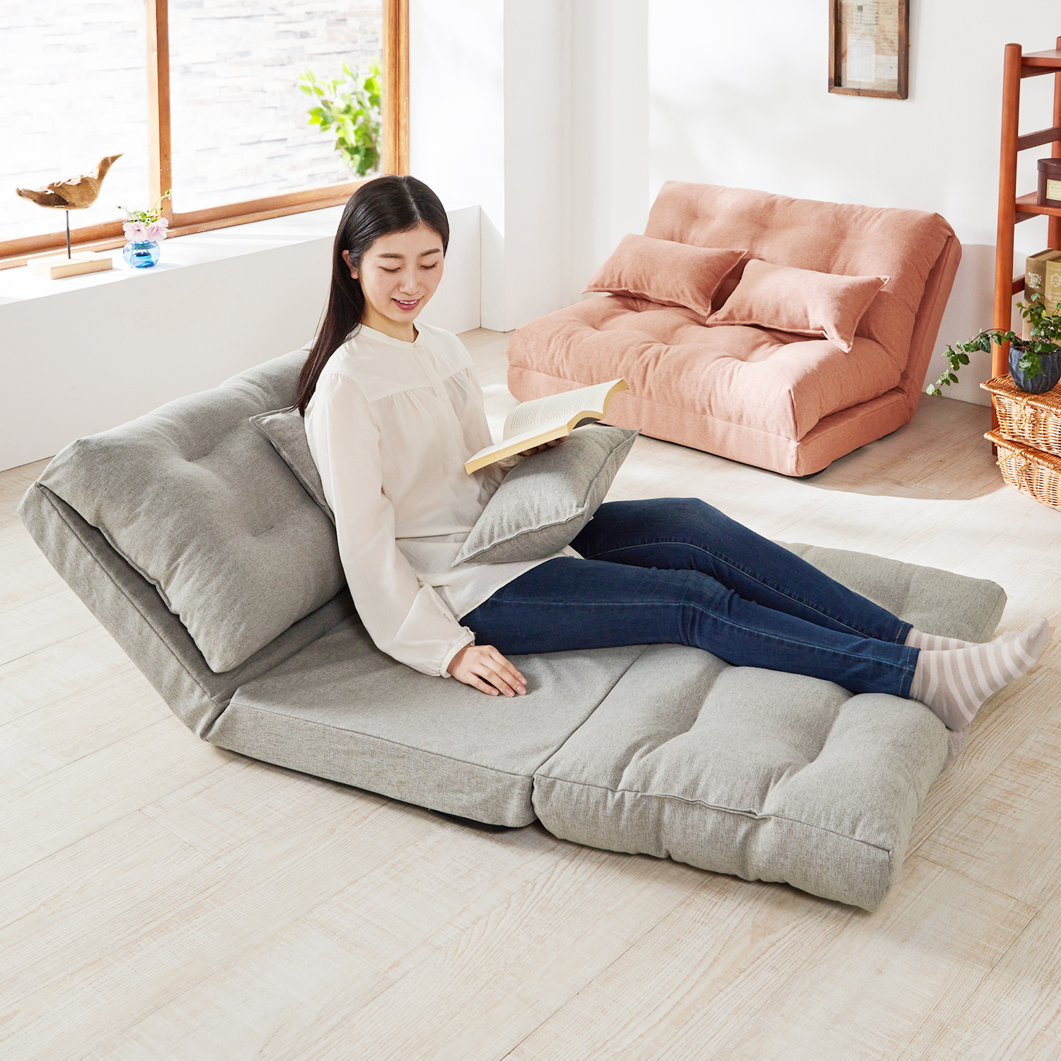 ■低反発14段階リクライニングソファ レイアウト自由でローソファにも インテリア 寝具 収納 ソファ ソファベッド 14段階リクライニング