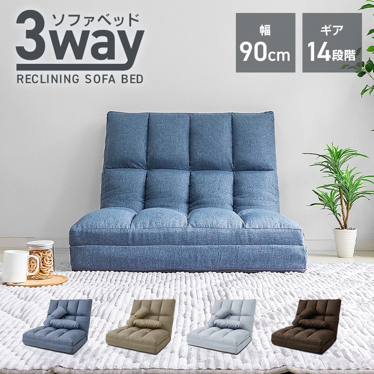 ■ソファーベッド 3WAY ハイバック ソファベッド カウチ 幅90 クッション付き リクライニング ローソファー 日本製ギア おしゃれ 折りたた
