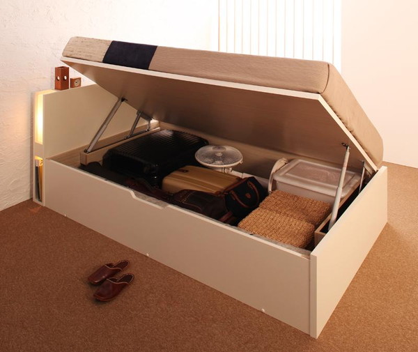 ■ベッド シングル 跳ね上げ式ベッド ガス圧 ベッド下収納 収納付き 大容量 全面収納 宮付き ヘッドボード 枕元 棚 おしゃれ モダン メンズ
