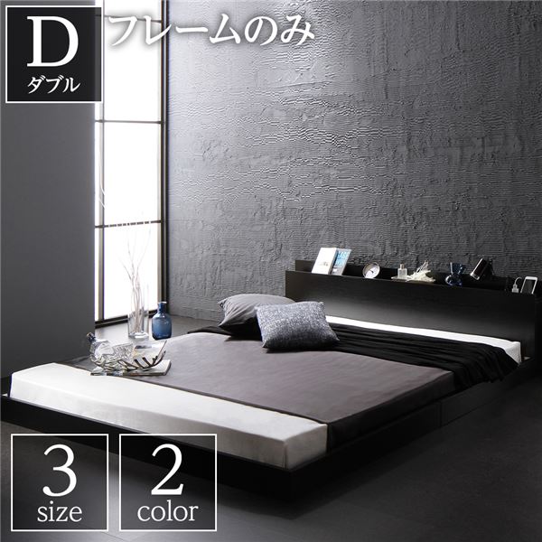 ■ベッド 低床 ロータイプ すのこ 木製 宮付き 棚付き コンセント付き シンプル モダン ブラック ダブル ベッドフレームのみ 【北海道・沖