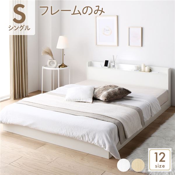 ■ベッド 低床 連結 ロータイプ すのこ 木製 LED照明付き 宮付き 棚付き コンセント付き シンプル モダン ホワイト シングル ベッドフレー