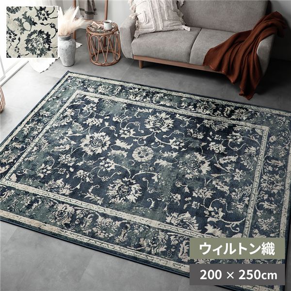 ■ラグ マット 約200×250cm ネイビー ホットカーペット対応 床暖房対応 オリエンタル柄 ウィルトン アンティーク レトロ ヴィンテージ 調