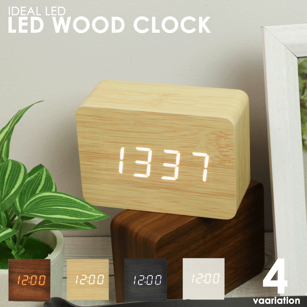 <商品説明> シンプル&スタイリッシュ!どんなお部屋にも馴染むLEDウッドクロック お部屋に自然な温もりを加えつつ、モダンなテクノロジーを取り入れた「LEDウッドクロック」。 この時計は、ウッドデザインの温かみと、視認性の高いLEDディスプレイを兼ね備え、どんなインテリアにも調和します。 主な特徴: デュアルパワーソース: 電池とUSBケーブルの2種類の電源供給が可能。どこに置いても、コンセントの有無を気にせず使用できます。(電池は別売です。) 多機能搭載: 時刻表示だけでなく、アラーム機能や温度表示など、日常生活に役立つ機能が充実。朝の目覚めや部屋の環境管理にも便利です。 エコでスタイリッシュ: エコ素材を使用し、地球にも優しい。洗練されたデザインは、リビングルームやベッドルーム、オフィスなど、どんな場所にもマッチします。 カラーオプション: ナチュラル、ブラック、ホワイト、ブラウンの4色展開。お好みの色を選んで、お部屋の雰囲気に合わせてください。 心地よい時間を刻み、暮らしを豊かにするこのLEDウッドクロックを、ぜひお試しください。