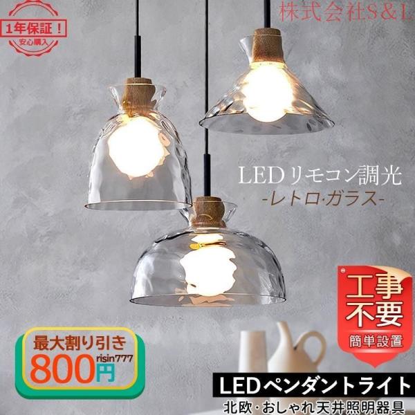 ■DIY ペンダントライト ガラス おしゃれ 北欧 木製 照明器具 アンティーク キッチン 天井照明 玄関 寝室 廊下 1灯 S&L工事不要 リモコンL