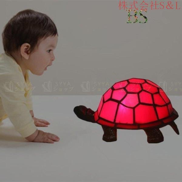■可愛い ステンドグラス 亀デスクライト 卓上ライト テーブルランプ アンティーク 株式会社S&Lガラス照明 led おしゃれ インテリアランプ