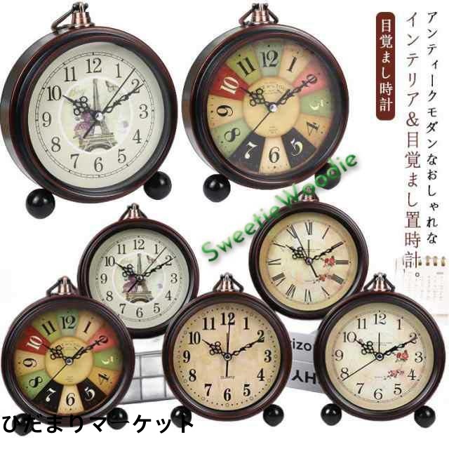 上質 目覚まし時計 復古ローマ置き時計 アンティーク レトロ ローマ フラワー 置時計 掛け時計 卓上 北欧 めざまし時計連続秒針 掛け時計 目覚まし時計 アナログ ベッド 寝室 リビング
