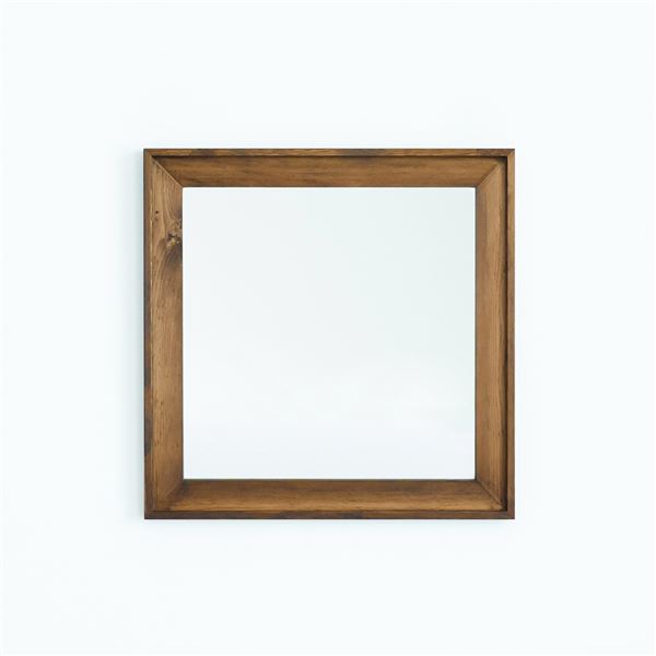 ■L型フレームウォールミラー(680×680mm) (アンティーク レトロ ヴィンテージ ブラウン)天然木 北欧風 日本製 国産 鏡 姿見 高級感 ドレッ