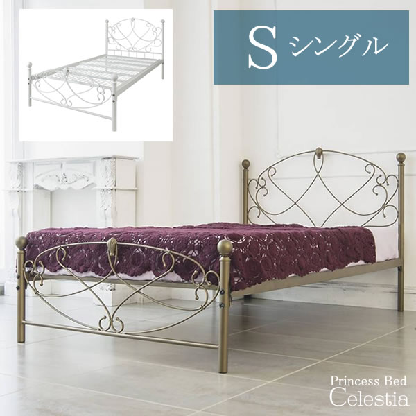 ■ベッドフレーム シングルベッド シングル Sサイズ ハイタイプ スチール アイアン メッシュタイプ アンティーク プリンセス 姫系 おしゃれ