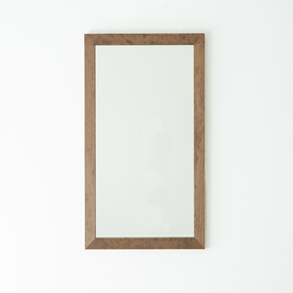 ■幅広枠ウォールミラー(60×108)(アンティーク レトロ ブラウン/茶) 天然木 姿見鏡 ワイド 高級感 木製 飛散防止加工 壁掛け 北欧風 ヴィ