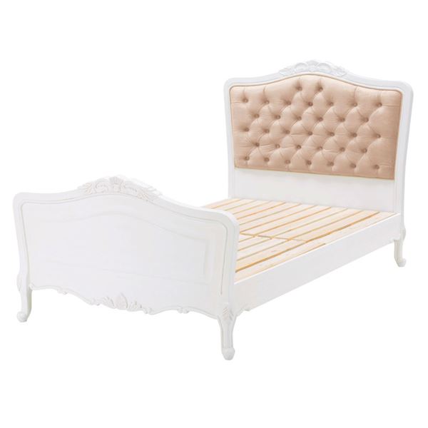 エレガントな彫刻とねこ脚、アンティーク風の上品な木製ベッド。すのこ使用で通気性がよく湿気を逃します。セミダブルサイズ