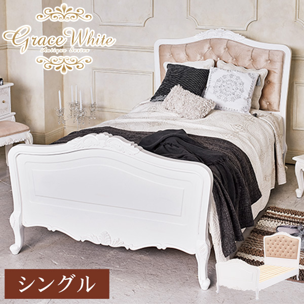 ■ベッド シングル ベッドフレーム ベッドシングル ベッドフレームシングル ヘッドボードクッション おしゃれ 姫 姫系 白 アンティーク風