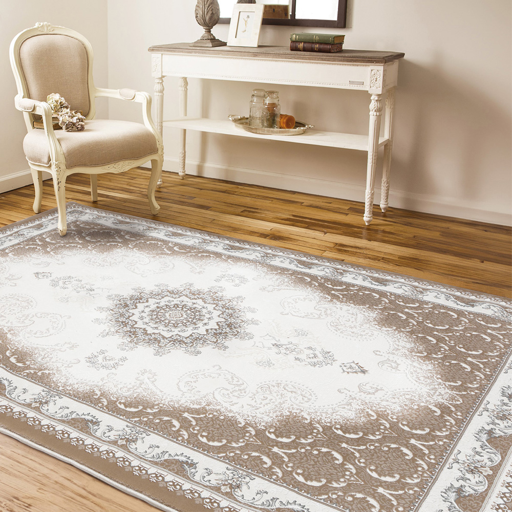 ■【ベルメゾン】アンティーク調デザインのウィルトン織り消臭・防炎機能付きラグ