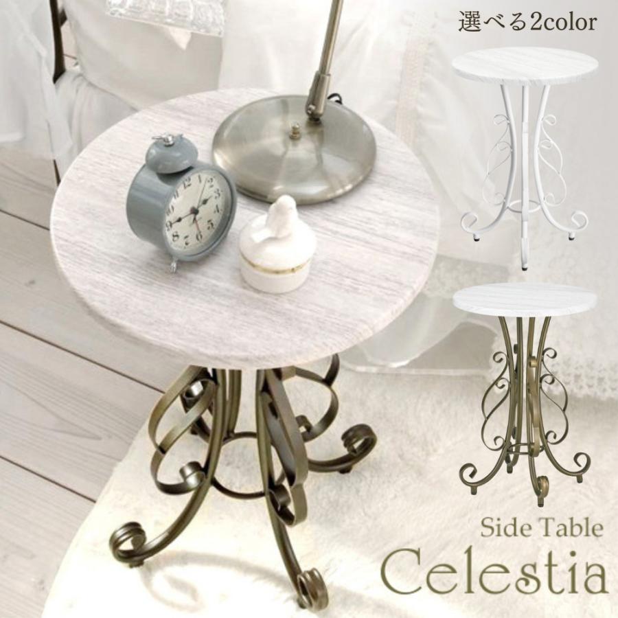 曲線をあしらった装飾の洗練されたデザイン、心地よさを醸し出すアンティークゴールドが人気の『Celestia(セレスティア)』シリーズのラウンドテーブルです。ソファサイドテーブルやデスクのサブテーブルとしてお使いいただけます。【仕様】W40×D40×H56.5材質:木目柄塩化ビニール貼りMDF(ラッカー塗装)スチール(エキボシ樹脂粉体塗装)耐荷重:5kgアジャスター付※組立式(組立時間:約10分)送料無料は基本無料となります。一部地域・離島等の条件によりましては別途追加送料が必要となります。関連キーワード(本商品の説明ではございません)MIYATAKE 宮武 製作所 みやたけ おしゃれ かわいい 可愛い 綺麗 優美な装飾デザイン 大人 女性 白 ホワイト