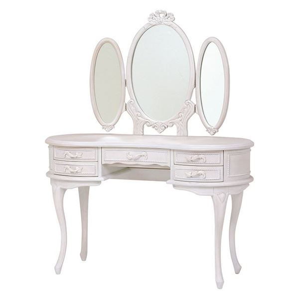 ヨーロピアン調の天然木製 引出し収納付き 鏡台 ドレッサードレッサー 化粧台 鏡台 天然木 ベッドルーム 寝室 リビング お祝い プレゼント 贈り物 ギフト どれっさーエレガントなヨーロピアンスタイルの天然木 木製 製ドレッサー 幅広い整理 収納 スペースと美しい三面鏡が魅力 アンティーク レトロ ヴィンテージ 調のハンプトンシリーズで、ベッドルームを華やかに彩る 姫系のロマンティックな雰囲気を演出する引き出し付き化粧台 ドレッサー 化粧台 約幅115cm 木製 姫系 三面鏡 引き出し付き アンティーク レトロ ヴィンテージ 風 ハンプトンシリーズ ベッドルーム◇関連: 生活用品/インテリア/雑貨/インテリア/家具/収納家具/ドレッサー/コスメワゴン (キーワード: 整理 整頓 容量 収納 格納 収容 ラック 棚 シェルフ 台 デザイン オシャレ おしゃれ 化粧台 鏡台 化粧箱 ワゴン TCC596055 RDA0002817766 6386100 インテリア 寝具 鏡 ドレッサー 鏡台 3面ドレッサー 収納 収納家具 台 3面 エレガントなヨーロピアンスタイルの天然木 木製 製ドレッ