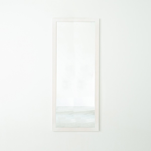 ■幅広枠ウォールミラー(54×130)(ホワイト/白) 天然木 姿見鏡 ワイド 高級感 木製 飛散防止加工 壁掛け 北欧風 ヴィンテージ レトロ アン