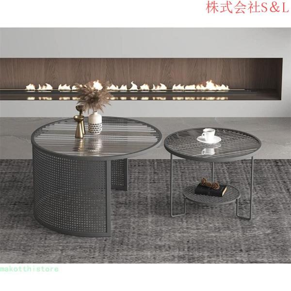 ■ラタンコーヒーテーブル ネストテーブル トレイトップコーヒーテーブルウィッカーコーヒーテーブル丸 ローテーブルセンターテーブル手織