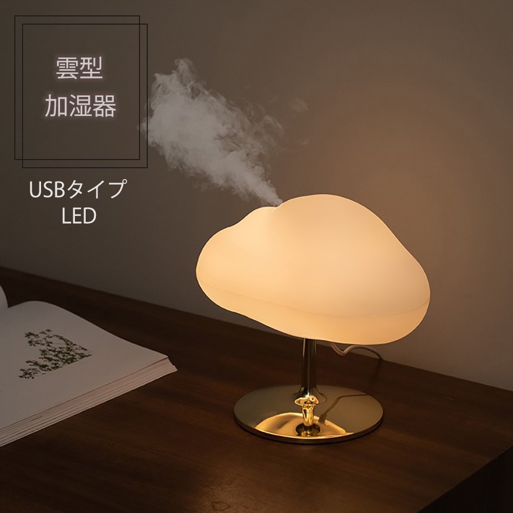 ■加湿器 雲 スタンド ゴールド 乾燥対策 アロマ ディフューザー 加湿機 LED 照明 アロマ ランプ ナイト ライト 超音波 アロマ加湿器 卓上