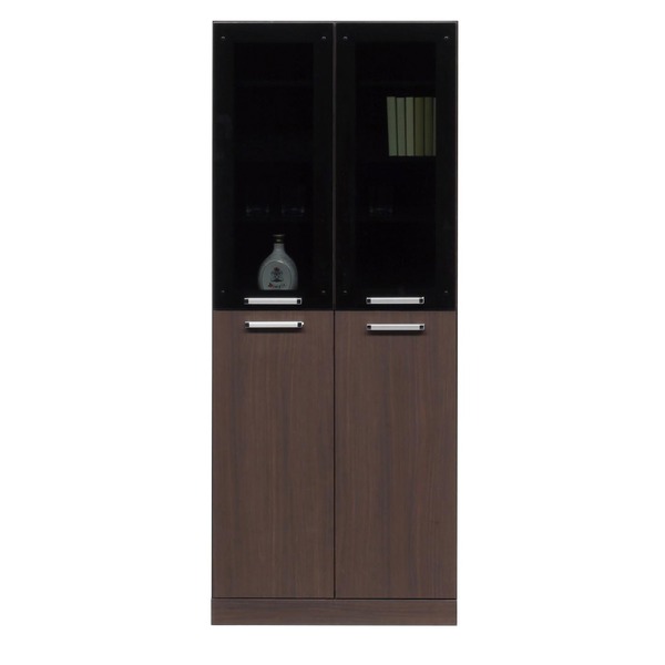 ■フリーボード(キャビネット/キッチン収納) 〔幅74cm〕 木製 ガラス扉/可動棚付き 日本製 ダークブラウン 〔Angel〕エンジェル 〔完成品