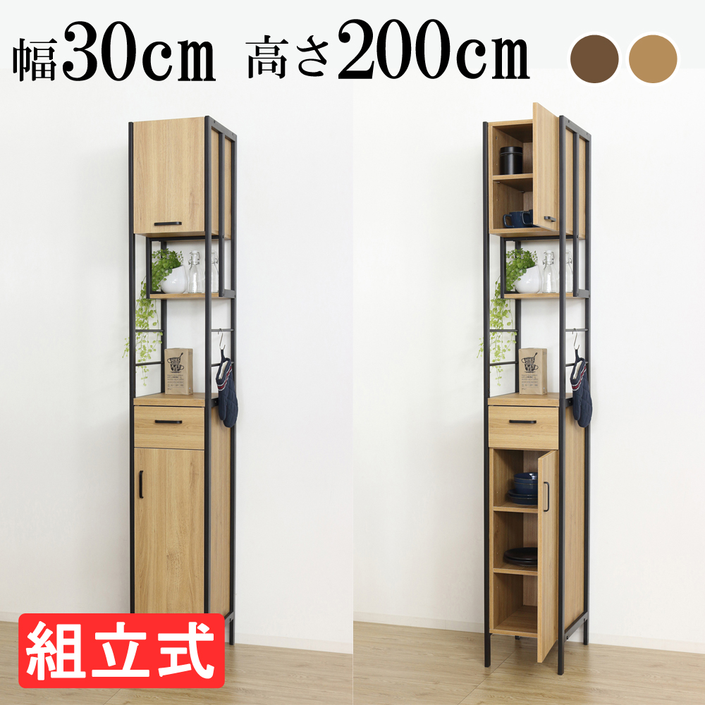 ■アート食器棚30-200 ヴィンテージ風 食器棚 幅30cm すき間 高さ200cm 組立式 木目調 キャビネット おしゃれ 高級感 キッチン収納 クロシ
