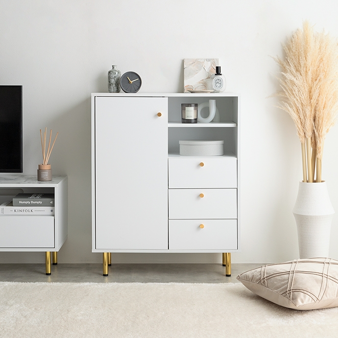 ■★メーカー保証付★ キャビネット ゴールド脚付き(幅70cm) 収納力抜群 大理石調天板 コンパクト ワンルーム メーカー直送 送料無料