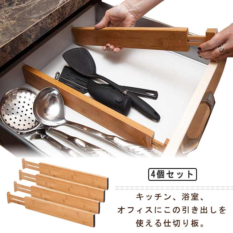 ■引き出し 仕切り板 キャビネット オフィス キッチン用 小物収納 長さ調整可能 多機能 本棚 4個セット 文房具収納 家庭用 伸縮式 伸縮式