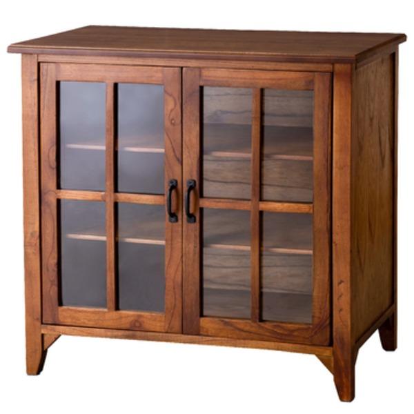 ■キャビネット 収納棚 幅80cm PM-318 木製 脚付き 強化ガラス ティンバー 完成品 リビング ダイニング インテリア家具