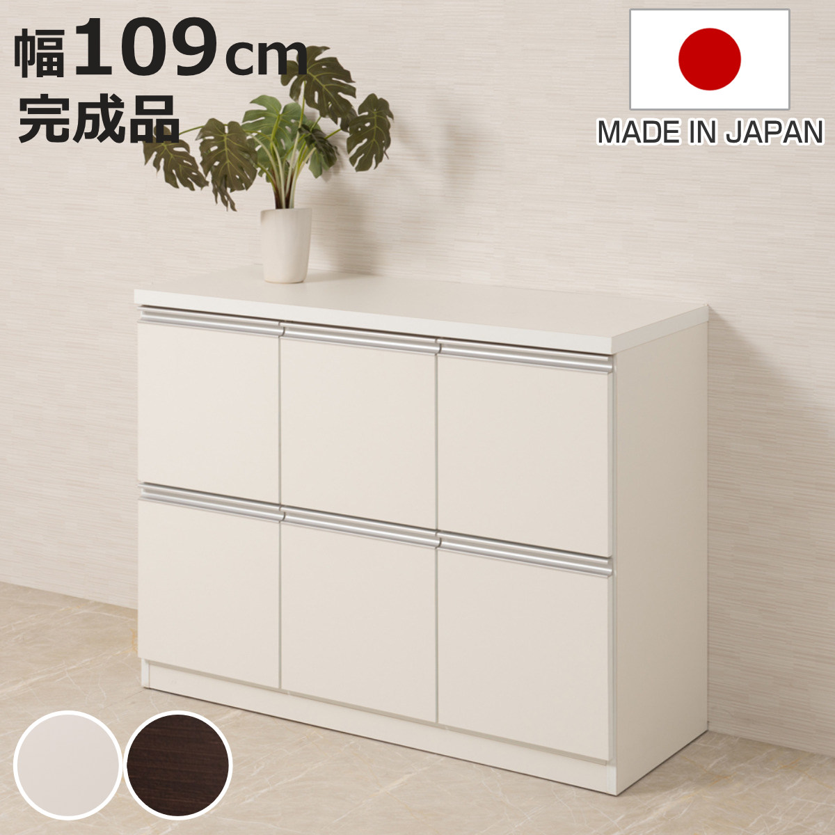 ■ワイドキャビネット 幅109cm 6枚扉タイプ 日本製 完成品 ( キャビネット ラック スクエア 収納棚 リビングボード A4対応 ラインハンドル