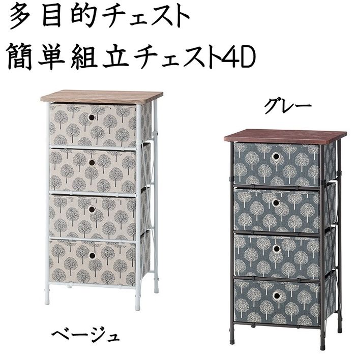 ■北海道・沖縄・離島配送不可 代引不可 チェスト 多目的 キャビネット 収納 簡単組立チェスト4D 2カラー 東谷 LFS-654