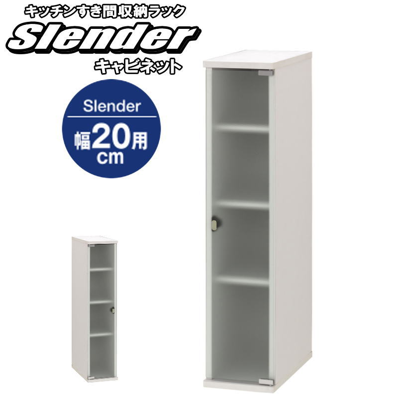 わずかな隙間を有効利用出来ます。 キッチンや洗面所のデッドスペースにぴったりフィット。 扉は左右開きどちらでも組立時に選択可能。 シリーズ同サイズのストッカー、キャビネット、チェストと組み合わせも可能。(チェストは下部設置のみ) サイズは約幅20cmと約幅25cmの2サイズをご用意いたしました。 [商品サイズ/重量]約幅20×奥行39×高さ89.5cm 約10kg 収納部内寸/[本体]約幅16.1×奥行35.4×高さ86cm [可動棚]×3枚(約幅15.8×奥行31.6×高さ1.5cm) [耐荷重](天板)30kg・(棚板部)5kg [材質](本体)プリント紙化粧繊維板、(ガラス)飛散防止フィルム貼り強化ミストガラス [付属品]転倒防止バンド [生産国]マレーシア製 [組立区分]お客様組み立て式(組立の目安:30分程度)