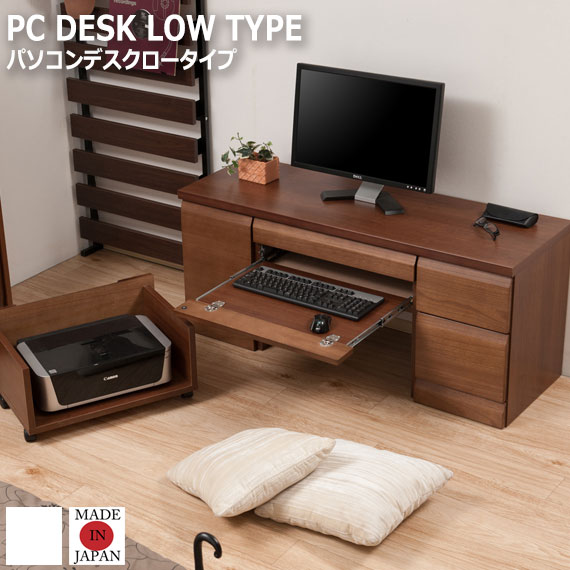 ■DELUX デラックス パソコンデスク ロータイプ (ロー 和室 デスク 机 低め 作業台 書斎机 木製 キャビネット 天然木 北欧 ナチュラル)
