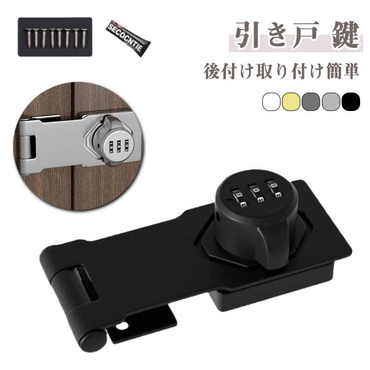 ■引き戸 鍵 後付け 防犯 ロック ドアロック 3桁ダイヤル式 穴あけ不要 室内ドア 鍵 補助錠 引き出し キャビネット 暗証番号ロック ロッカ