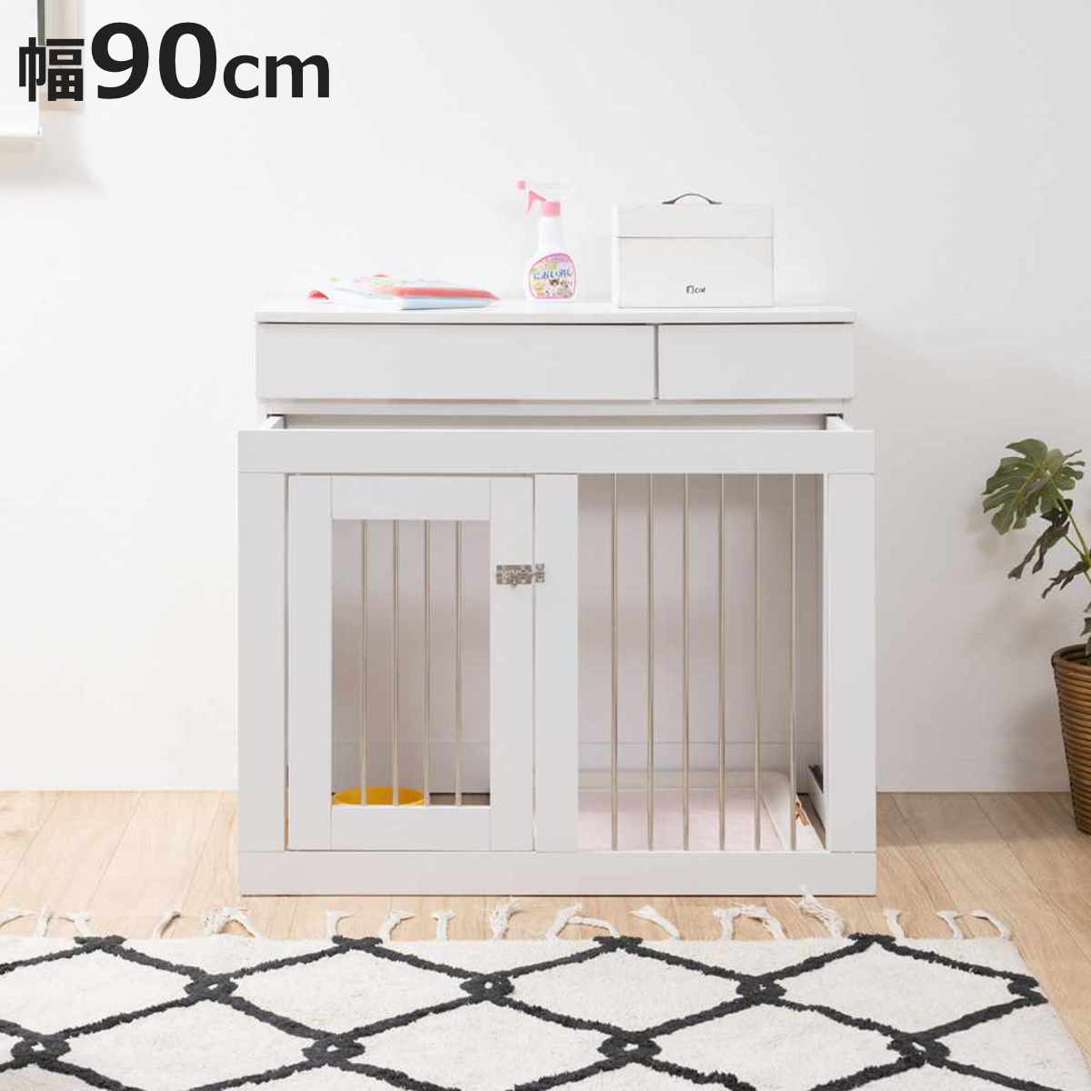 ■ペットケージ 幅90cm キャビネット ホワイトリビング ( ペット家具 ケージ 家具 収納 引き出し 収納ラック 鍵付 ペット用品 ペットベッ