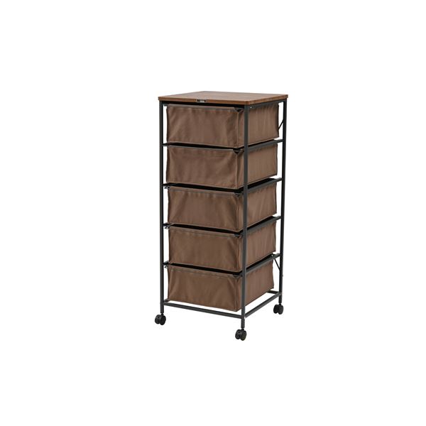 ■チェスト タンス キャビネット 5段 約幅43cm ブラウン キャスター付 移動可能 車輪付き き ストッパー付き 金属 スチール リビング イン