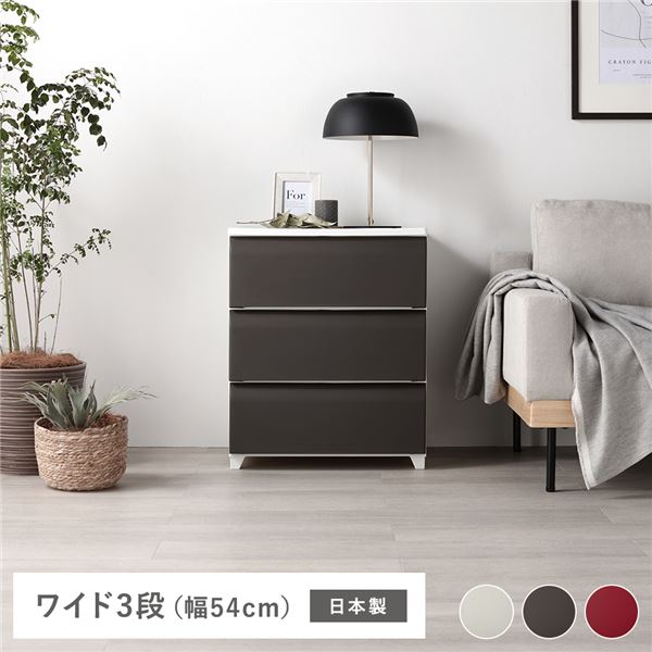 ■タンス ワイド 3段 約幅54cm ブラウン プラスチック製 脚付き 日本製 国産 ホコリが入りにくい チェスト キャビネット 衣類整理 収納 整
