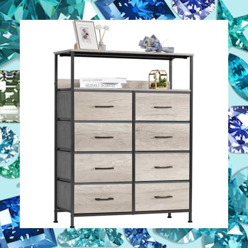 ■LYNCOHOME 棚付き収納チェスト グレージュ タンス オシャレ 布製引き出し キャビネット 衣類収納 リビング収納 低ホルム 北欧風 4段8杯【