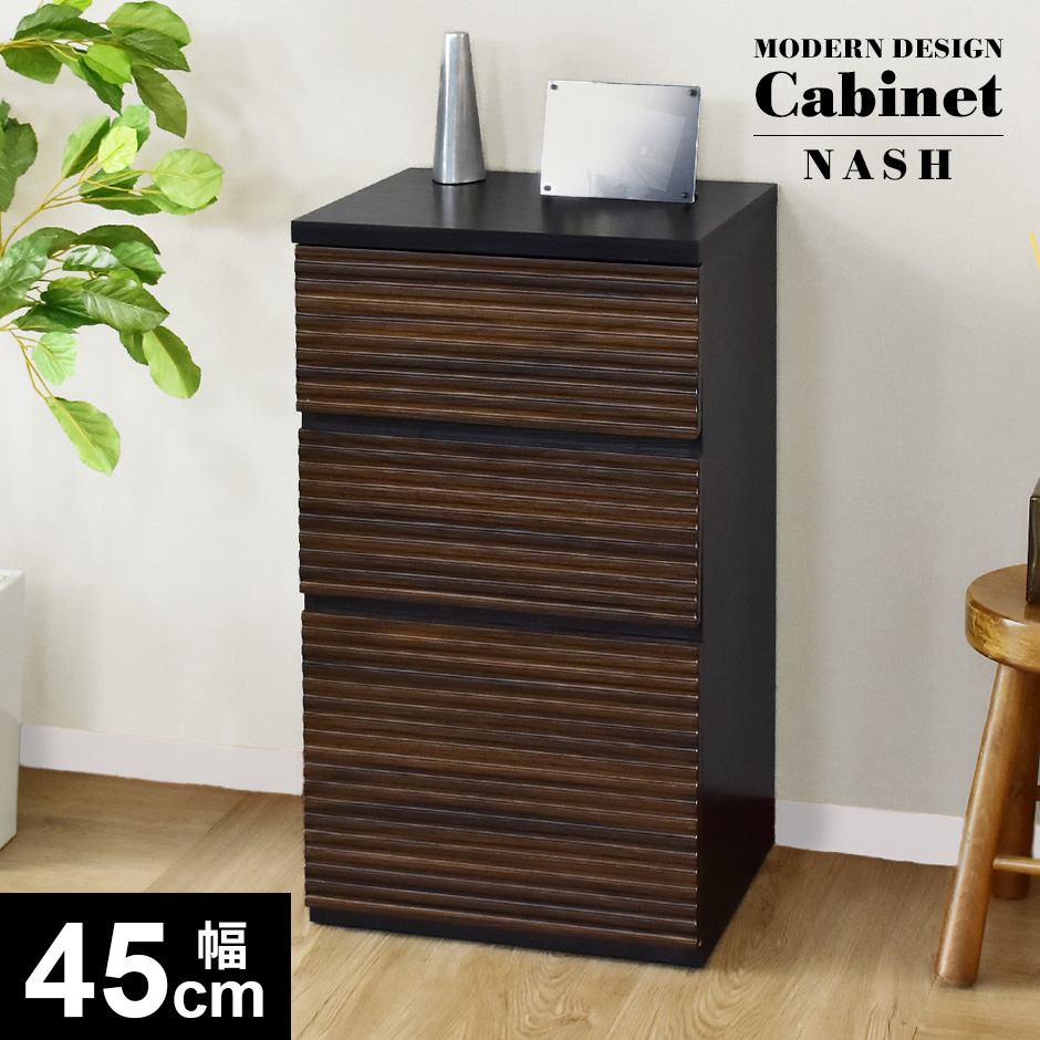 ■配送料について※別途送料対象地域のお客様はご購入手続きの際、その他要望欄へ【別途送料了承済み○○円×購入点数】と記入下さいますとスムーズな対応が可能です。・北海道:+2,000円・沖縄・離島:別途お見積り◆他商品との同梱は出来かねます。予めご了承ください。■商品名:ナッシュ/キャビネット(収納)【Nash/Cabinet】◆サイズ幅45×奥行40×高さ83(cm)◆材質メラミン、合成樹脂化粧繊維板◆重量約26kg◆耐荷重天板:10kg引き出し上・中段:各5kg引き出し下段:10kg◆梱包サイズ約幅88×奥行48×高さ15(cm)/約28kg(梱包材含む)◆備考※その他、記載事項ご確認の上ご注文ください。※ご使用のモニターやディスプレイ等の環境によって、実際の明るさや色と多少異なって見える場合がございます。※組み立て方や個体差により表記と多少の差異が生じる場合がございます。 ご予約商品をご購入の場合、au PAYゆったり後払いはご利用になれません。他のお支払方法をご選択ください。