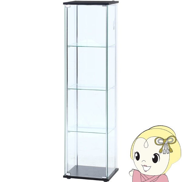 LEDで照らす!ガラスコレクションケース ■カラー:ブラック ■商品サイズ 全体:幅425 × 奥行365 × 高さ1620mm 耐荷重(ガラス棚板):5kg 天板厚み:18mm 強化ガラス棚板厚み:5mm ガラス棚板:355x285mm ■重量:約37.1kg ■素材 構造部材(天板/地板):プリント紙化粧繊維板 構造部材(柱):金属(鋼) 構造部材(扉板/背板/側板/棚板):強化ガラス 表面加工(柱):めっき(クロム) ■LEDライト付き ■組立:お客様組立品 ※組み立ては2人以上で行ってください。 ※お客様組立て品につきましては、組み立て後に不良の連絡をされても対応ができません。組み立て前にパーツに不良・傷等がないか、必ずご確認下さいます様よろしくお願い申し上げます。 ※記載は商品仕様の一部です。仕様説明不足等の理由での返品はできません。特に適合等は必ずご確認ください。