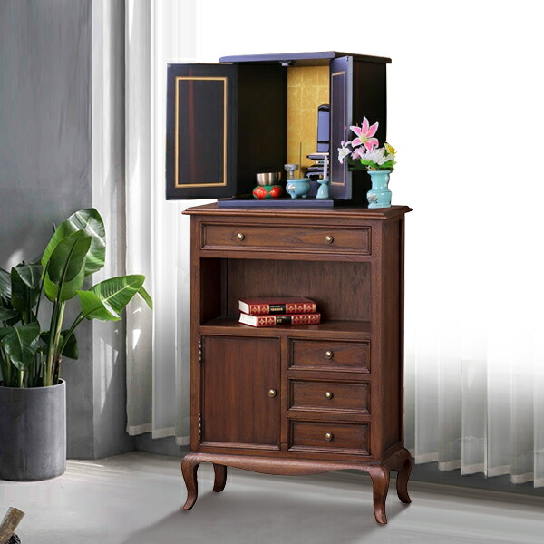 ■仏壇台 ブラウン 仏壇 台 アンティーク調 幅61cm 木製 おしゃれ 仏壇下台 キャビネット 猫脚 ネコ脚チェスト FAX台 アンティーク調 幅60