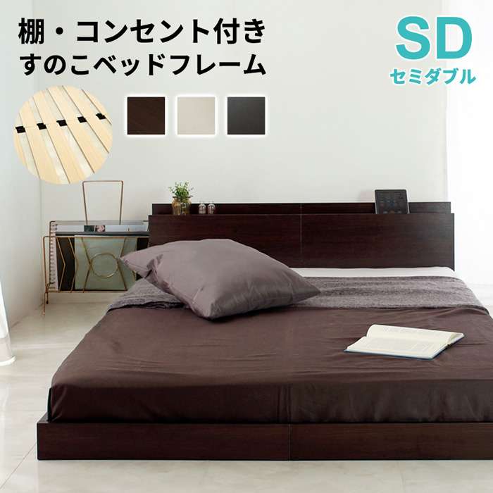 ■ベッド セミダブル セミダブルベッド フレームのみ フロアベッド ローベッド Lonnie【ロニー】宮付きフロアベッド