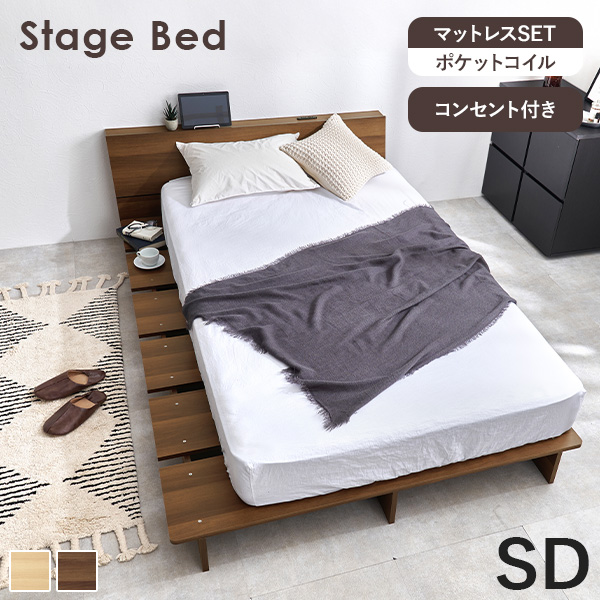 ■ベッド マットレス付き ステージベッド セミダブル ベッドフレーム すのこ ローベッド すのこベッド コンセント フロアベッド SD ロータ